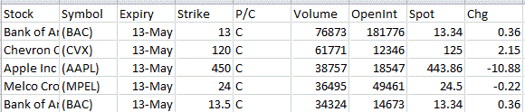 Most Active Equity Options & Strikes – BAC, CVX, AAPL, MPEL by The Options Insider | May 14, 2013 | Unusual Activity
