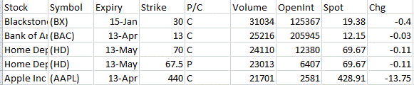 Most Active Equity Options & Strikes – BX, BAC, HD, AAPL by The Options Insider | Apr 1, 2013 | Unusual Activity