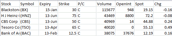 Most Active Equity Options & Strikes – BX, HNZ, CBS, TSO, BAC