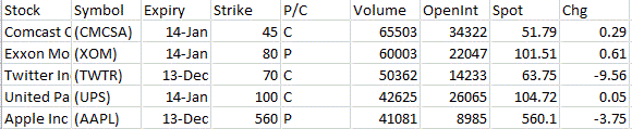 Most Active Equity Options & Strikes – CMCSA, XOM, TWTR, UPS, AAPL