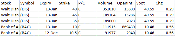 Most Active Equity Options & Strikes – DIS, BAC by The Options Insider | Dec 5, 2012 | Unusual Activity