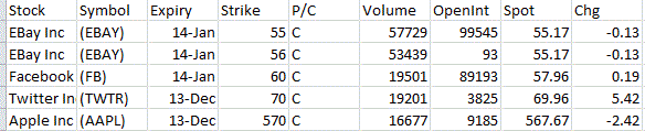 Most Active Equity Options & Strikes – EBAY, FB, TWTR, AAPL by The Options Insider | Dec 24, 2013 | Unusual Activity