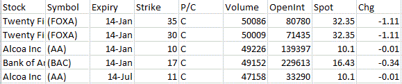 Most Active Equity Options & Strikes – FOXA, AA, BAC by The Options Insider | Jan 13, 2014 | Unusual Activity