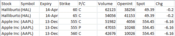 Most Active Equity Options & Strikes – HAL, AAPL by The Options Insider | Dec 13, 2013 | Unusual Activity