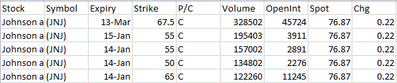Most Active Equity Options & Strikes – JNJ