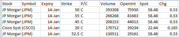 Most Active Equity Options & Strikes – JPM, CSCO by The Options Insider | Dec 31, 2013 | Unusual Activity