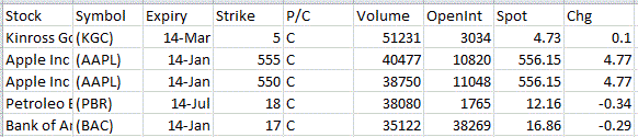 Most Active Equity Options & Strikes – KGC, AAPL, PBR, BAC by The Options Insider | Jan 23, 2014 | Unusual Activity