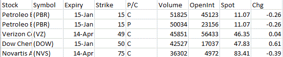 Most Active Equity Options & Strikes – PBR, VZ, DOW, NVS