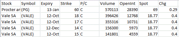 Most Active Equity Options & Strikes – PG, VALE by The Options Insider | Oct 16, 2012 | Unusual Activity