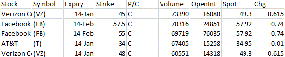 Most Active Equity Options & Strikes – VZ, FB, T by The Options Insider | Jan 7, 2014 | Unusual Activity