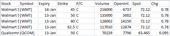 Most Active Equity Options & Strikes – WMT, QCOM by The Options Insider | Dec 4, 2012 | Unusual Activity
