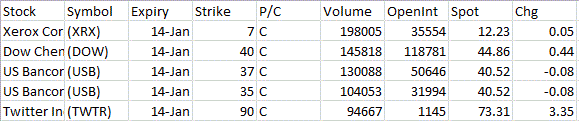 Most Active Equity Options & Strikes – XRX, DOW, USB, TWTR by The Options Insider | Dec 26, 2013 | Unusual Activity