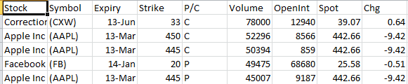 Top Ten Most Active Equity Options & Strikes – CXW, AAPL, FB